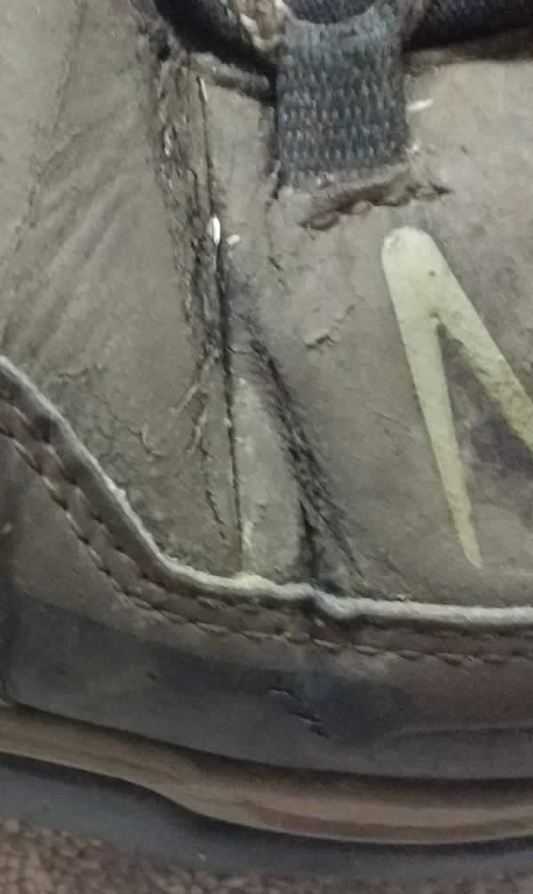 Sadly the deep creases in the outer material in both boots have now turned into cracks. This failure seems more than skin deep as the waterproof goretex has also failed at this point and water can now get in. We still have high temperatures so a leaking boot is only an inconvenience, but once the winter arrives they will need replacement.